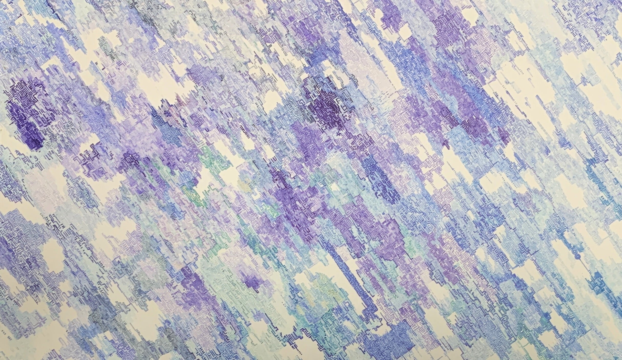 AIが偶然性さえ再現できる時代において、本作はガラスペンによる無心の筆記を通じ、人間の身体や感情の揺らぎから生まれる固有の“偶然の質”を提示する。意味を排した線の集積は、過剰に意味を求める社会への静かな抵抗であり、鑑賞者に解釈不能な空白と向き合う時間を生み出すと共に図らずの美を提示する。