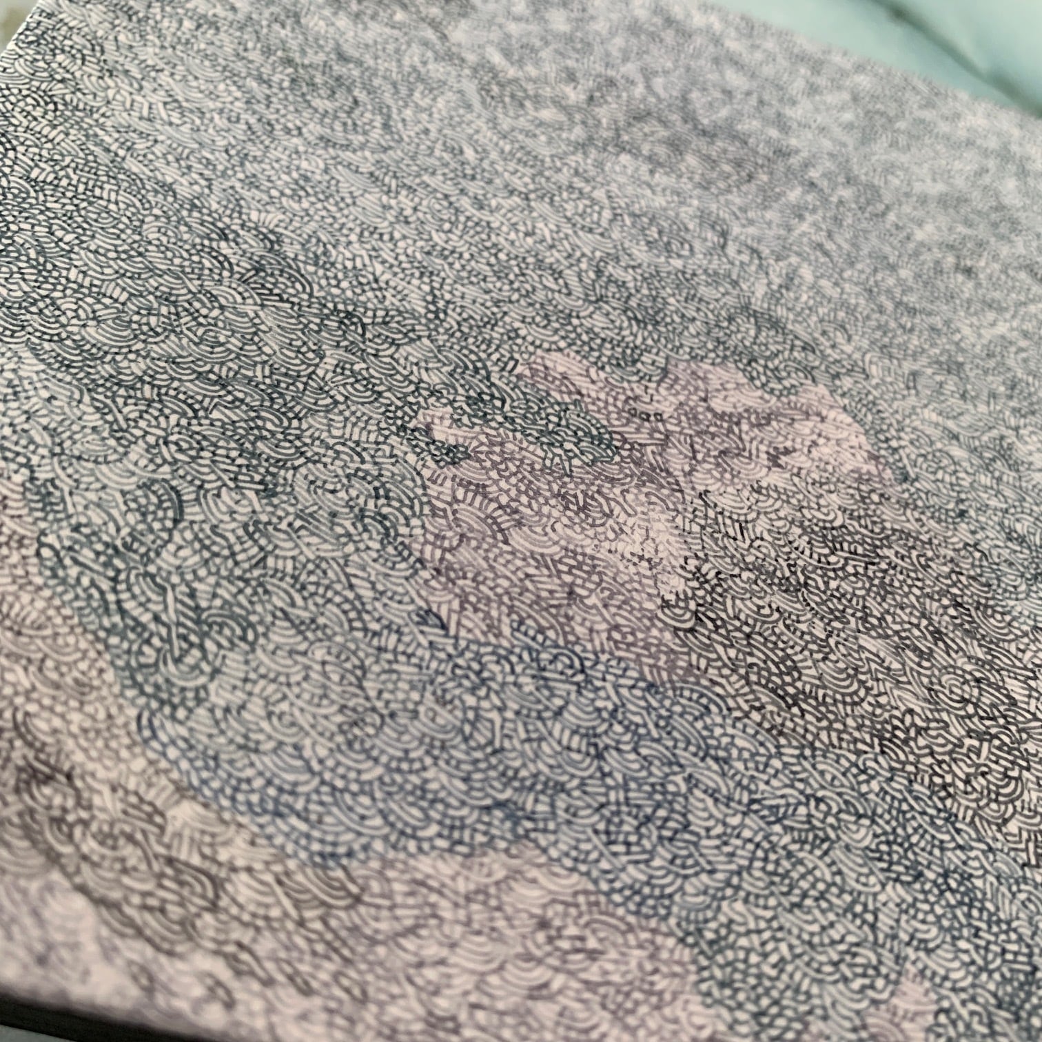 制作過程でペンによるインクの擦れで偶発的にできる濃淡や