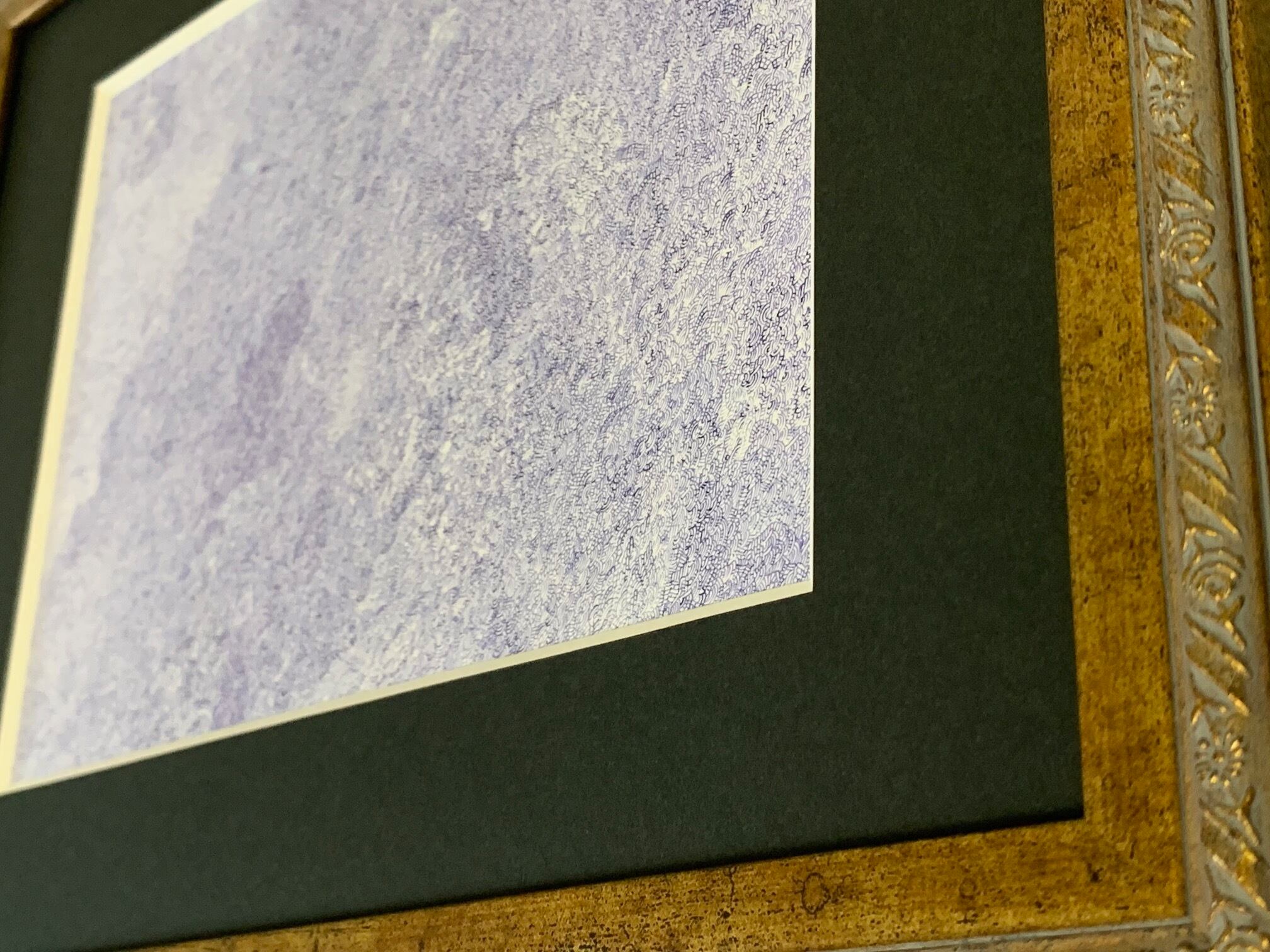 原画裏面にサインと手描きのラベル(共シール)が添付されています。